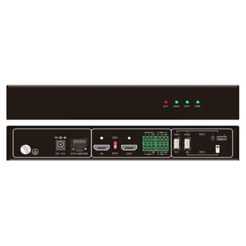 Input ports: HDMI *1, HDMI loop-out *1, audio input*1 Output ports: Audio*1, LAN *1, USB*2, RS232 *1 IO\IR*1 Encoder-decoder, can be used as both input node and output node Load: Maximum resolution: 1080P