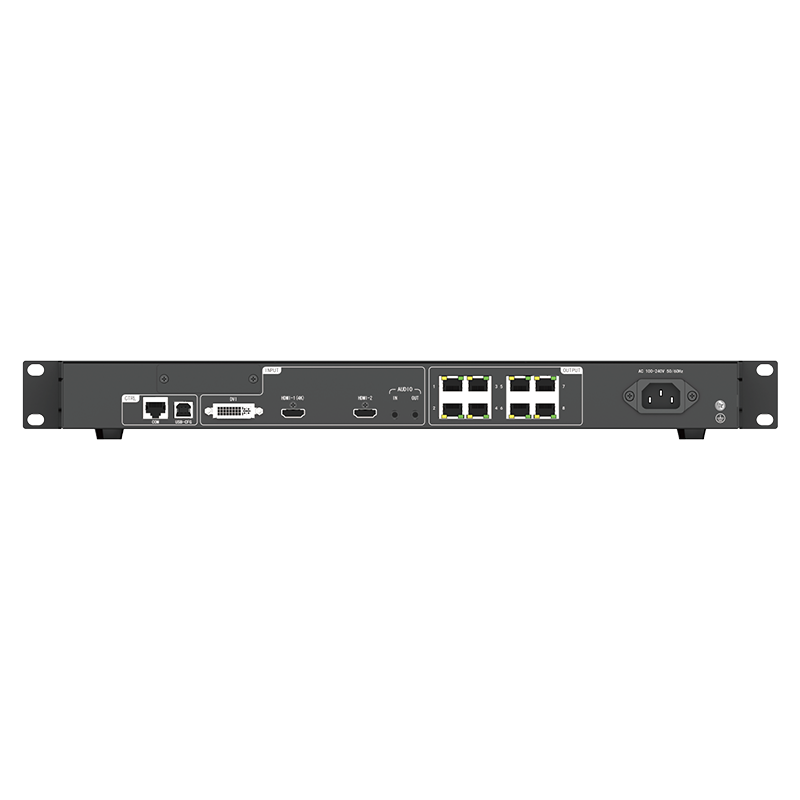 Input port: DVI*1, HDMI 1.3 *1, HDMI 1.4 * 1,, audio*1 Output port: LAN*8,audio*1 Control port: USB -CFG *1, COM *1 Load:5.2M Max width:8180 Max height: 4090