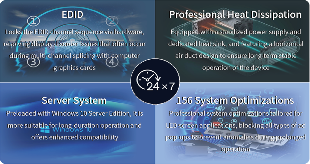 A full range of UHD display control solutions, covering splicing, synchronization, and custom scenarios.