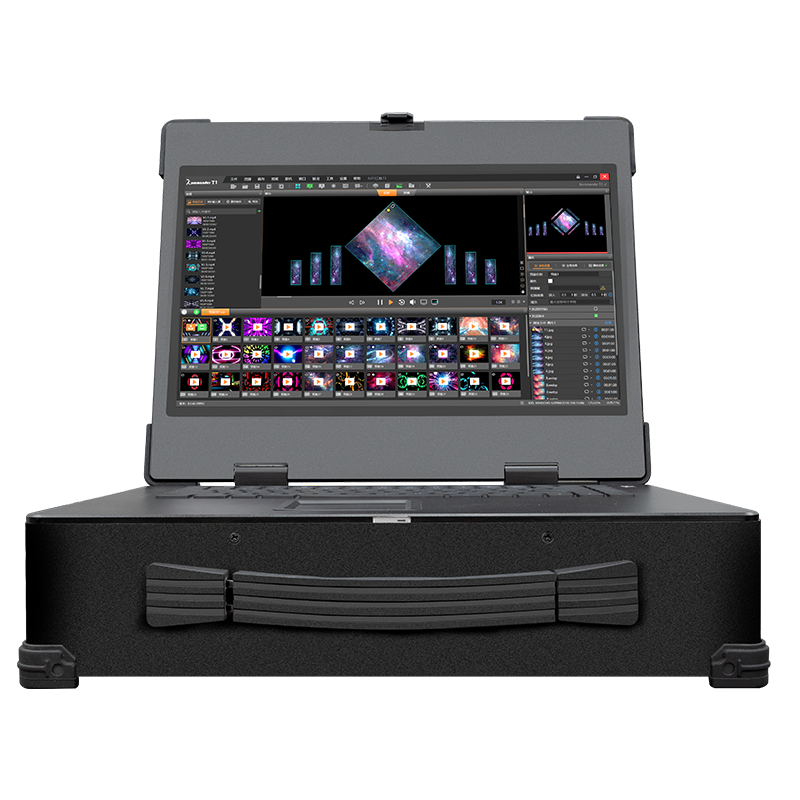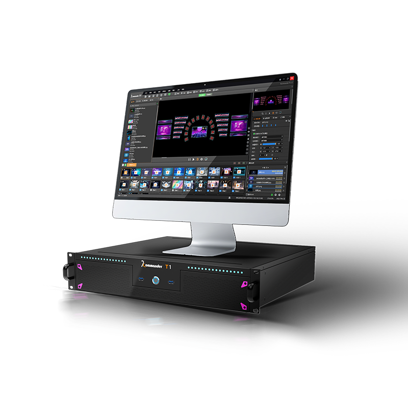 Two 4K outputs (DP*2/HDMI*1/DVI*4, select any two), dual 4K@60Hz point-to-point smooth display One independent HDMI HD monitor output Unlimited channels, unlimited screens, 8-layer playback control Hardware decoding support, powerful rendering capabilities, and excellent playback performance Supports on-demand and timeline modes, flexibly adapting to different editing and broadcasting needs Strict synchronization in master-slave mode ensures event safety Supports master-slave cascading for large-screen streaming Supports capture cards and NDI network screen capture Supports projection correction and fusion Supports adding websites and network streaming media Supports MIDI keyboard and DMX device control Supports spout capture for interactive projection and interactive material on-screen Built-in video transcoding tool, directly open and transcode when there are issues with video format or parameters Supports separate output of multiple videos and audio files Supports automatic backup of project edits to prevent on-site project re-editing Supports Supports PPT animation effects and internal video playback, web pages, and streaming media. Arbitrary layout of functional window modules, with the ability to save multiple layouts. Supports batch generation of plans and automatic name generation. Supports replacing all specified assets. Control commands support remote control via UDP. Supports linkage control with splicers and consoles for scene switching. The difference between T1 and T1 pro is that T1 Pro combines T1 with KVM system, eliminating the need for external devices. Other parameters are the same